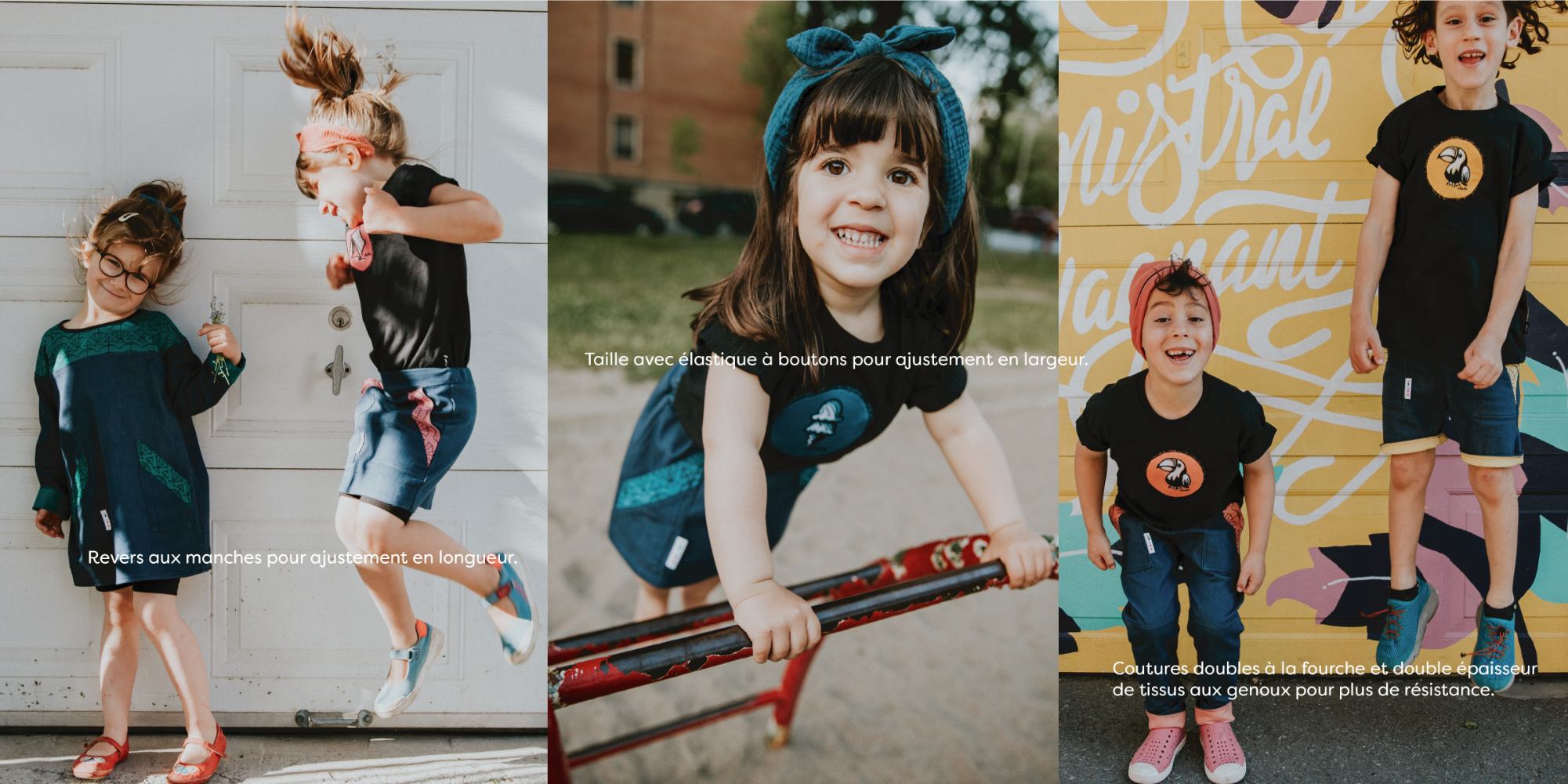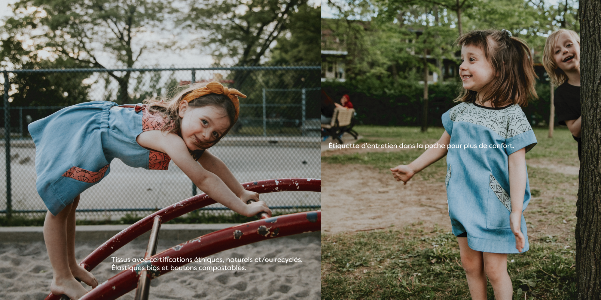 Adada aime la planète et compte faire beaucoup d’efforts pour l’aider! Nous utilisons principalement du coton et de la fibre de bois et bambou. Le peu de fibre de polyester utilisée est recyclée. Pour en savoir plus sur les matières utilisées, voir l’onglet MATIÈRES. Le tissu est dessiné et imprimé à Montréal et toute la confection est faite ici, à Montréal.